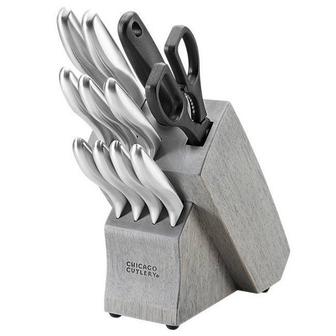 Choose from Same Day Delivery Drive Up or Order Pickup plus free shipping on orders 35. The Chicago Cutlery 16-piece knife set 6499 and 12-piece knife set 5399 from Target. With block knife sets it truly is whats on the inside that countsThats why its paramount to pick blades that you will actually use. Regularly priced at 3999 while supplies last it is priced at just 1999 in the Early Black Friday deals at Target. Update your chopping boards and browse a range of chopping boards from thick solid wood butcher blocks to flexible plastic ones you can bend. There are some big savings to be had at Target during the Early Black Friday Deals Holiday Best deals. 8-inch chef knife 6-inch bread knife 6-inch slicing knife 5-inch serrated utility knife 4-12 inch Santoku knife 3-inch paring knife six 45-inch steak knives all-purpose shears sharpening steel and wood block with black finish.